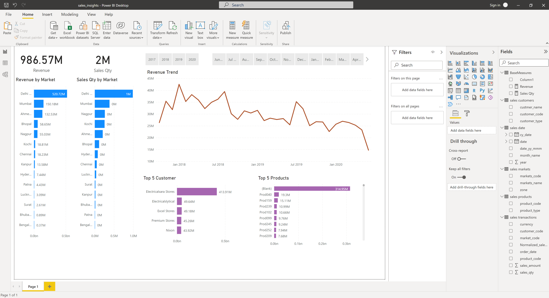 In this Project, we get sales data from a company selling computer hardware to stores in India and visualize it in Power BI. The viz enables the sales manager to get instant sales insights based on regions. I create a web version and a mobile version.